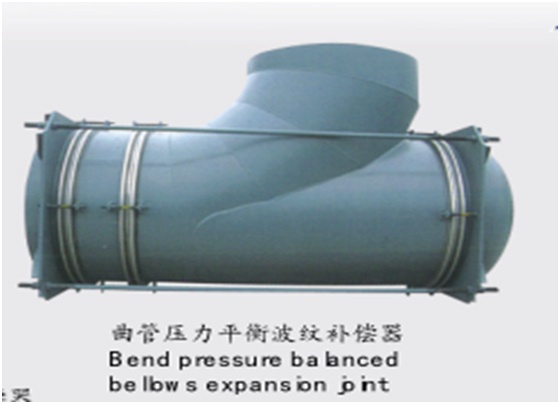 該類補償器是由兩個工作波紋管,一個平衡波紋管、端接管、中間接管、彎頭、封頭和端板及平衡推桿等裝置組成,其中平衡推桿在端板連接處帶有球面和錐面墊圈構(gòu)成滑動體,動全在補償器進行橫向補償時自行調(diào)整。壓力平衡型補償器可以對彎曲管段產(chǎn)生的橫向位移通過工作波紋管補償吸收,工作波紋管同時補償吸收直管段內(nèi)的軸向位移并通過平衡波紋和被平衡,該補償器一般用于“T”型和“空間門”型管道的位移補償,軸向剛度值為工作波紋管與平衡波紋管之和,軸向剛度較大,因此彈反力較大,該型補償器能平衡介質(zhì)壓力推力。